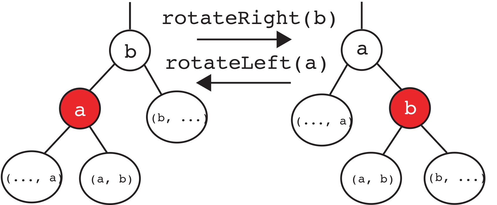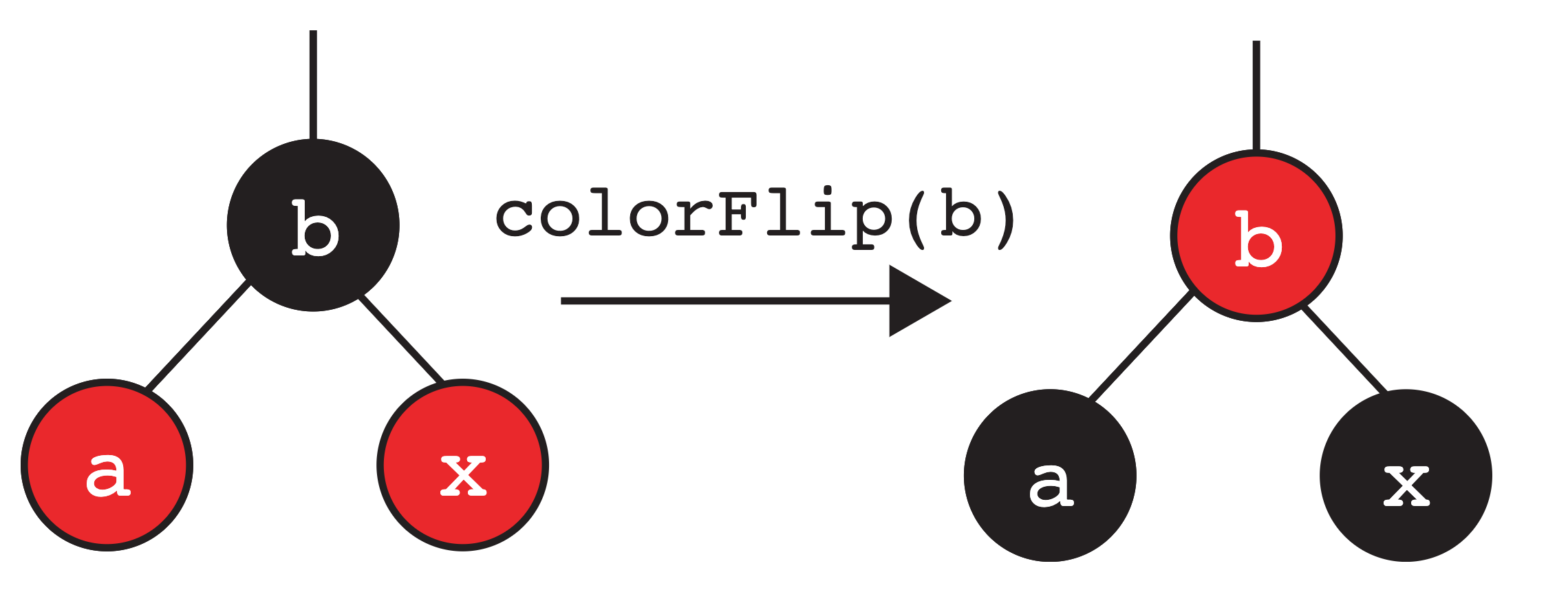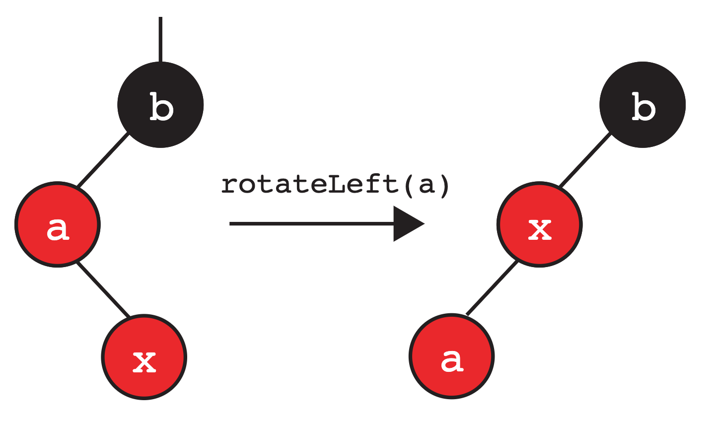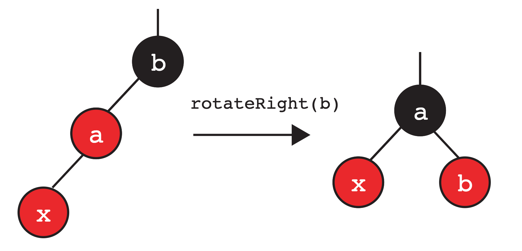 btoa. aandbhave moved to the “right”.- The two nodes swap colors so that the new root is the same color as the old root.